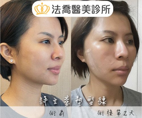做完後大概有一陣子仔細看臉頰及側臉曲線稍微有點凹凸不平及黑青現象發生,