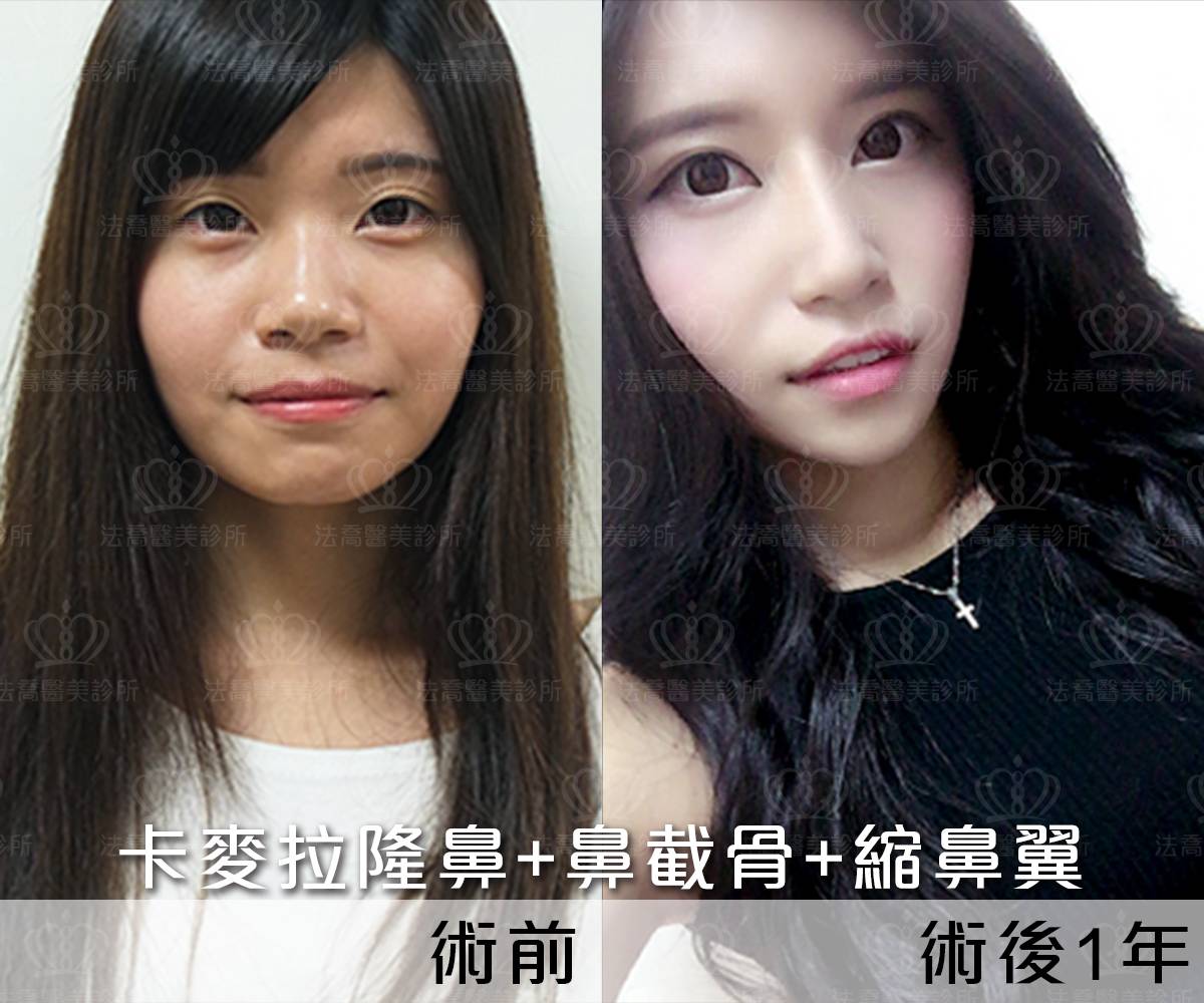 因為鼻子在五官的正中央,對五官比例相當重要!!原本我的鼻子鼻樑雖高,但沒有山根,再加上寬鼻翼,除了顯得臉很大之外,兩眼之間的距離也看起來很開,看起來超像比目魚(超困擾)