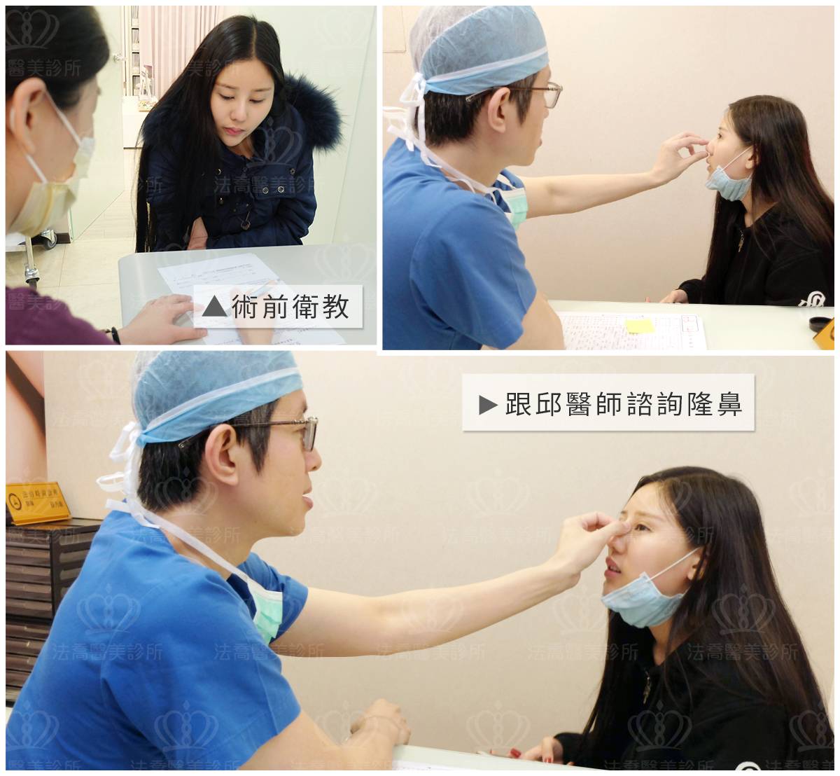於是我審慎考量後,決定就去法喬診所給邱浚彥院長諮詢鼻子,他也覺得我鼻子歪了,鼻頭也有點大但山根是挺的,我也跟邱醫生說我要很高很挺那種,畫妝不用畫的鼻影素顏看得出來有鼻子,醫生說沒問題,簡單,自信滿滿