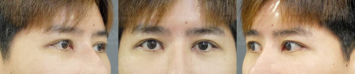 - 術後眼睛不自然 、 兩眼不對稱:術後可能因腫脹或疤痕問題,造成兩眼暫時性的不自然或不對稱,建議等 3至 6 個月,待疤痕軟化或完全消腫再做最後評估,通常雙眼不對稱需要進行二次修復的機率為 5%,人的器官多有天生性生理不對稱,加上大多是疤痕收縮造成。此為不可控制之因素,病患並無法要求雙眼 一定必須 100 %完全對稱 。