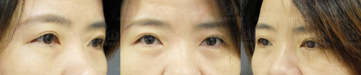 - 術後眼睛不自然 、 兩眼不對稱:術後可能因腫脹或疤痕問題,造成兩眼暫時性的不自然或不對稱,建議等 3至 6 個月,待疤痕軟化或完全消腫再做最後評估,通常雙眼不對稱需要進行二次修復的機率為 5%,人的器官多有天生性生理不對稱,加上大多是疤痕收縮造成。此為不可控制之因素,病患並無法要求雙眼 一定必須 100 %完全對稱 。