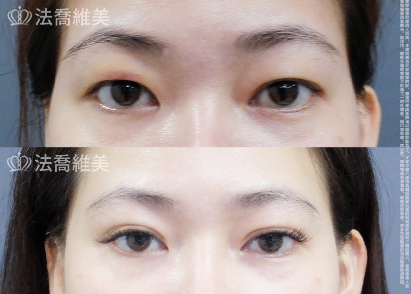 - 割雙眼皮併眼瞼肌提拉術因同時處理眼皮摺痕與提眼眼肌,術後可能會出現暫時性上眼皮閉合不全之情況。