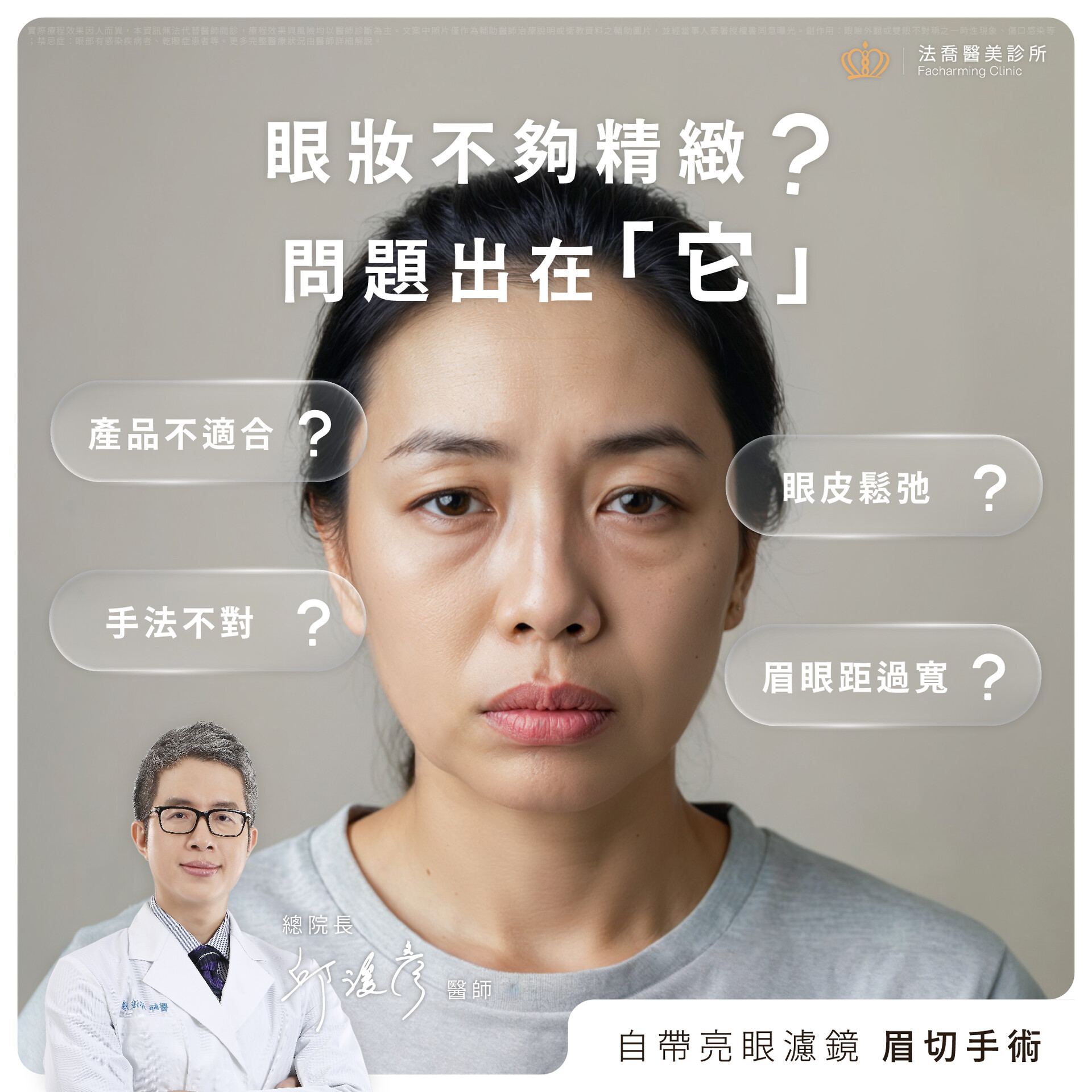 眼妝總是不夠精緻?問題可能出在「它」!每天精心畫眉、刷睫毛、貼雙眼皮貼,但眼神依舊「沒精神」? 其實問題可能不在妝容,而是出在「眉眼比例」! 隨著年齡增加,上眼皮鬆弛、眉眼距離下垂,容易造成「眉壓眼」現象,不僅讓眼神變得疲倦,還會讓眼妝顯得糊糊的、上妝不服貼。 這時候,與其不斷嘗試各種眼影與提亮術 …on- Thu, 30 Oct 2025- READ MORE - -