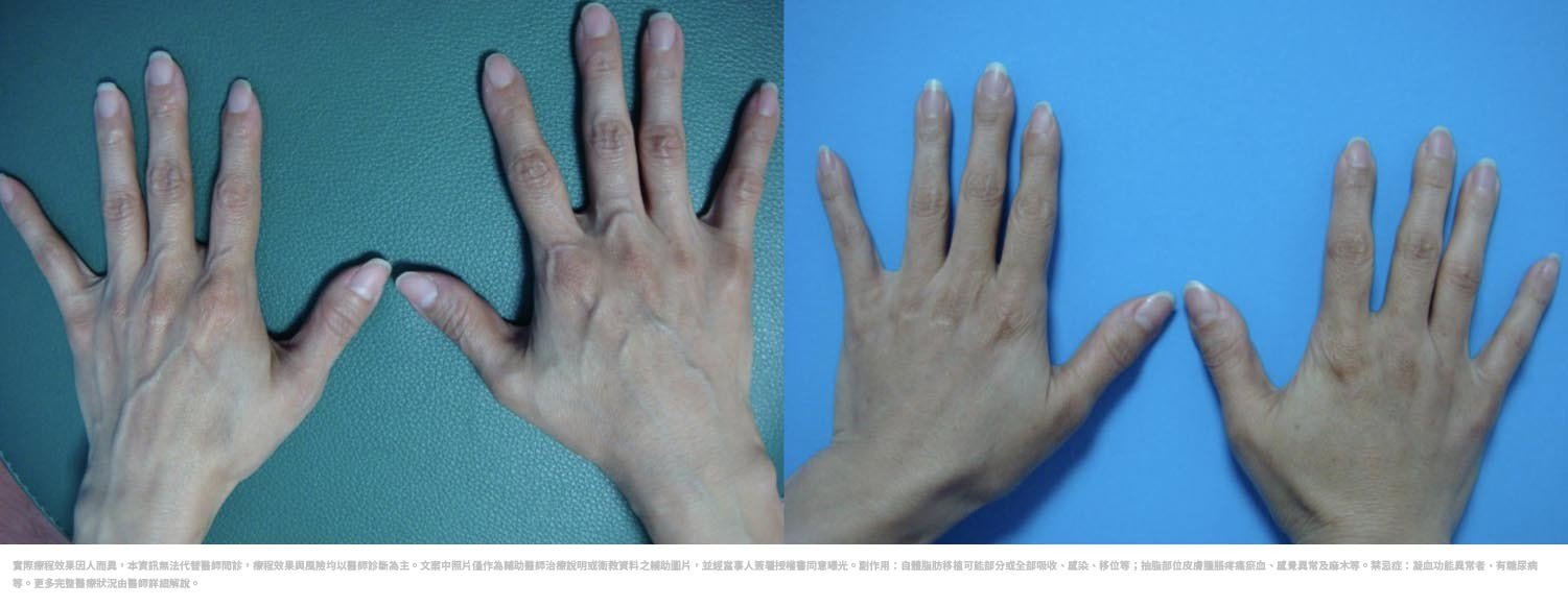 「雞爪手」的治療策略是補充缺失的皮下脂肪層,並修飾手部的線條與凹凸感與消瘦感。