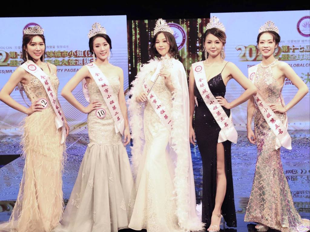 ▲2022全球城市小姐台北賽區前五名左起:林宜家、侯安琁、許珈嘉、曾仲萱、林琦恩。(中華全球城市選拔協會提供)