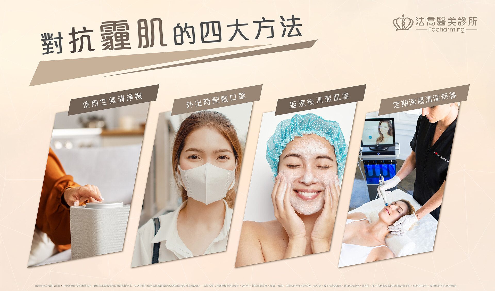 除了戶外空汙的影響,其實室內空汙也是導致肌膚出現問題的一大因素,特別在後疫情時代,大家更多時間待在家中,但室內的空氣汙染如二手菸、甲醛,或是寵物的動物毛髮皮屑以及冷氣空調設備中積累的灰塵、細菌和黴菌等,都會影響肌膚,因此除了改善室內空氣品質,也需要做好肌膚的清潔保養,才能避免產生霾肌。