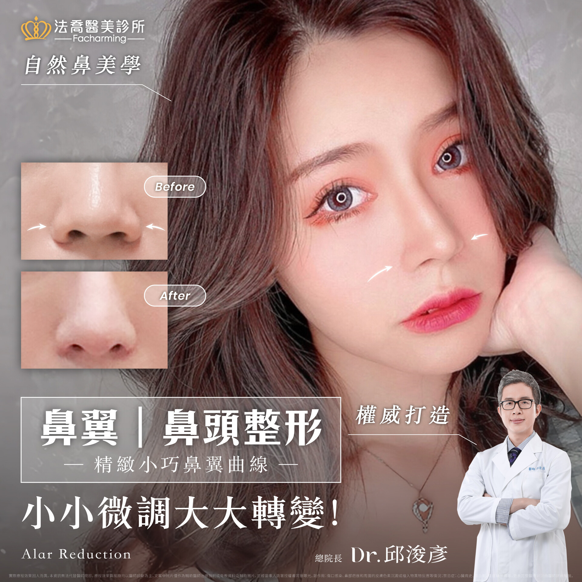 🌟如果你有以上困擾,透過鼻部微調手術如:縮鼻翼 、鼻頭雕塑,可以有效改善這些問題,讓鼻部線條更自然、柔和,達到更加和諧的五官比例!