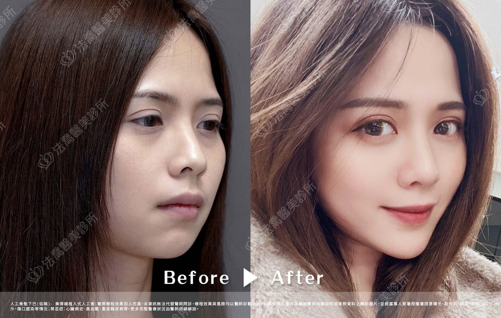 根據傳統的命理觀念裡,下巴的形狀與飽滿度攸關著事業的維持與運勢好壞,墊下巴可以有效的拉長正面臉型,很適合先天下巴短小、大餅臉或嚴重後縮的患者。