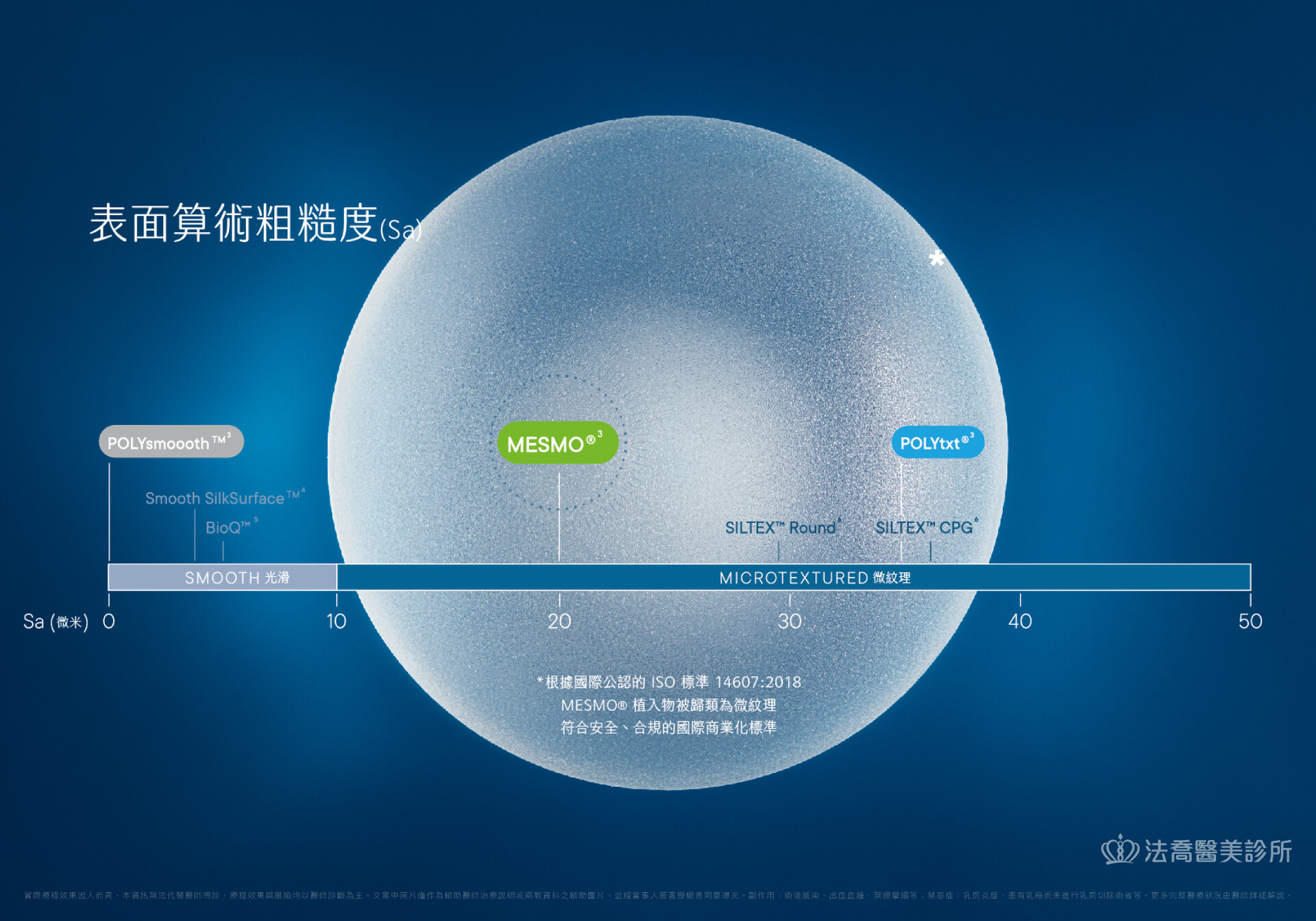 * 根據國際公認 ISO標準 14607:2018 MESMO® 植入物被歸類為微紋理符合安全、合規的國際商業化標準。