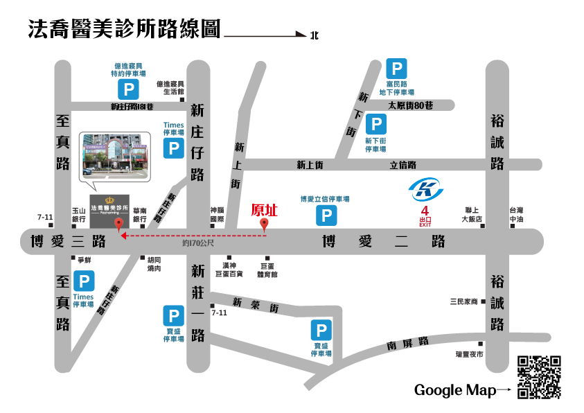 | Note: | Take Metro or Taxi from the hotel. It takes about 20~30 mins to the clinic nearby Ruei Feng Night Market and Hanshin Arena Shopping Plaza. |