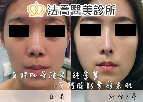- 一般腫脹期約1~2週,但因一部分的脂肪會被吸收(約3~5成),且脂肪的存活狀況需2~3個月才會穩定,故必須等待3個月後再評估是否需再一次填補脂肪。