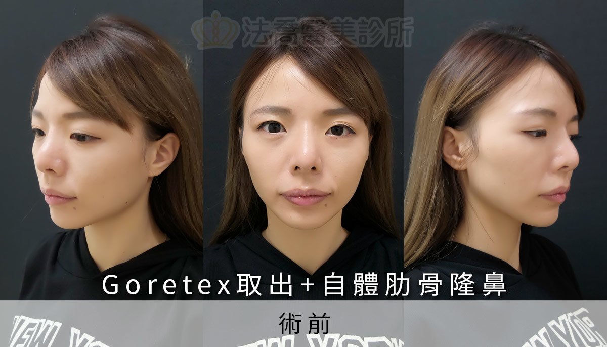 但是因為蕾蕾體質的關係(對於外來的假體會有一點敏感),加上工作過繁忙沒有用心照護一不小心就感染了,經過邱浚彥醫師看診後,建議要把原本的Goretex鼻模取出更換成自體肋骨隆鼻
