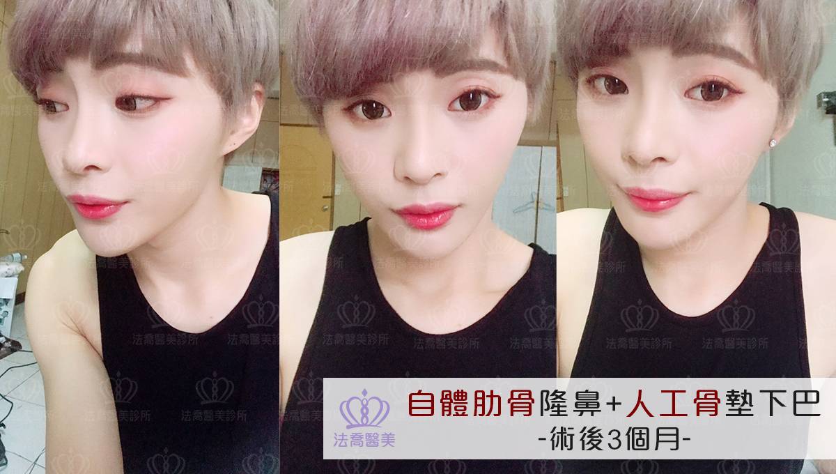 最近聽到身旁的朋友推薦法喬的邱浚彥醫師,專業細心,學經歷也很豐富,於是就抱著期待的心去諮詢了。因為我希望做一次手術就能達到心中想要的效果,邱醫師建議做 自體肋骨隆鼻+人工骨墊下巴,幾乎不會感染且更不會有排斥問題