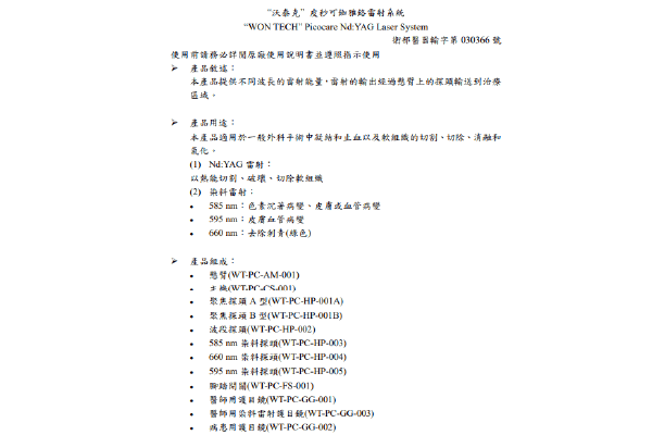 - 595 nm:皮膚 血管病變