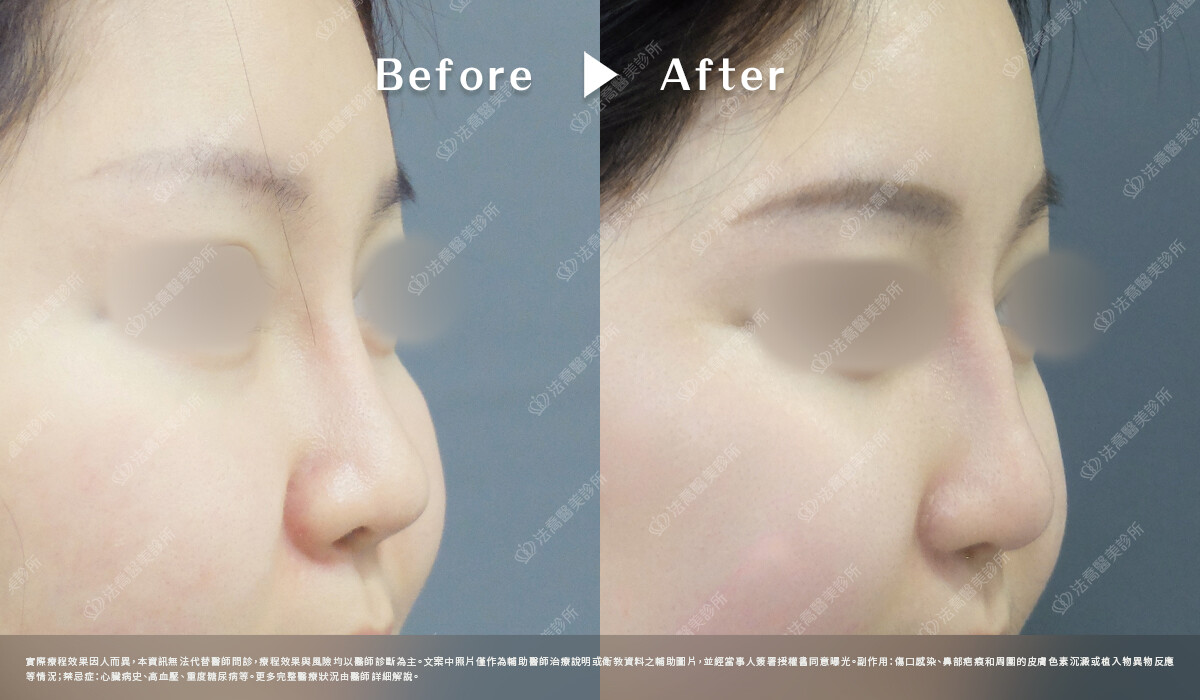 - 鼻模太高太低、鼻頭是否夠翹、鼻子太長或太短:此牽涉主觀想法,建議定期回診觀察半年後, 與醫師溝通討論後決定是否接受重新調整手術。