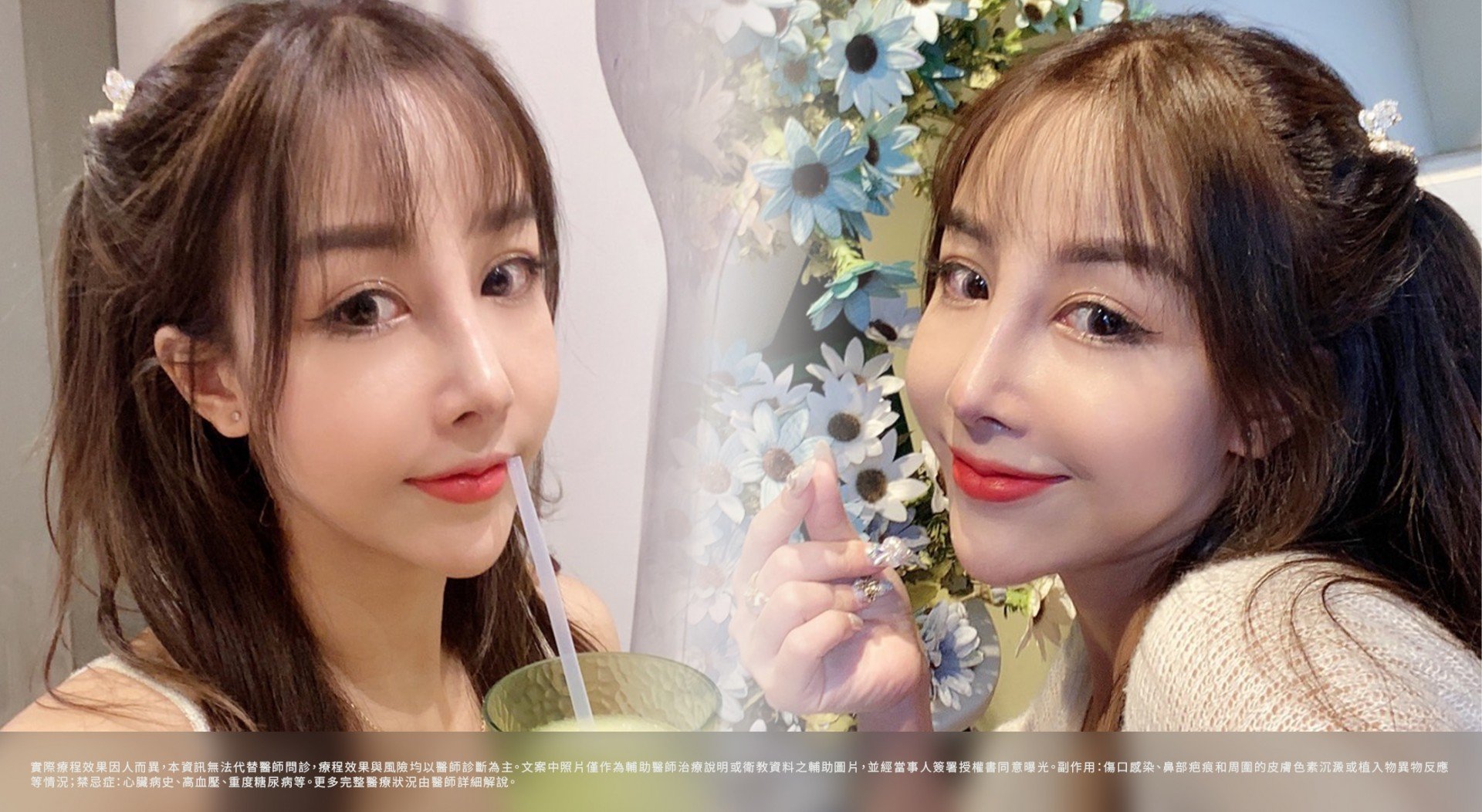 - 傷口裂出或癒合時間較長都有可能,極少數病患有鼻尖端皮膚潰爛壞死之可能,