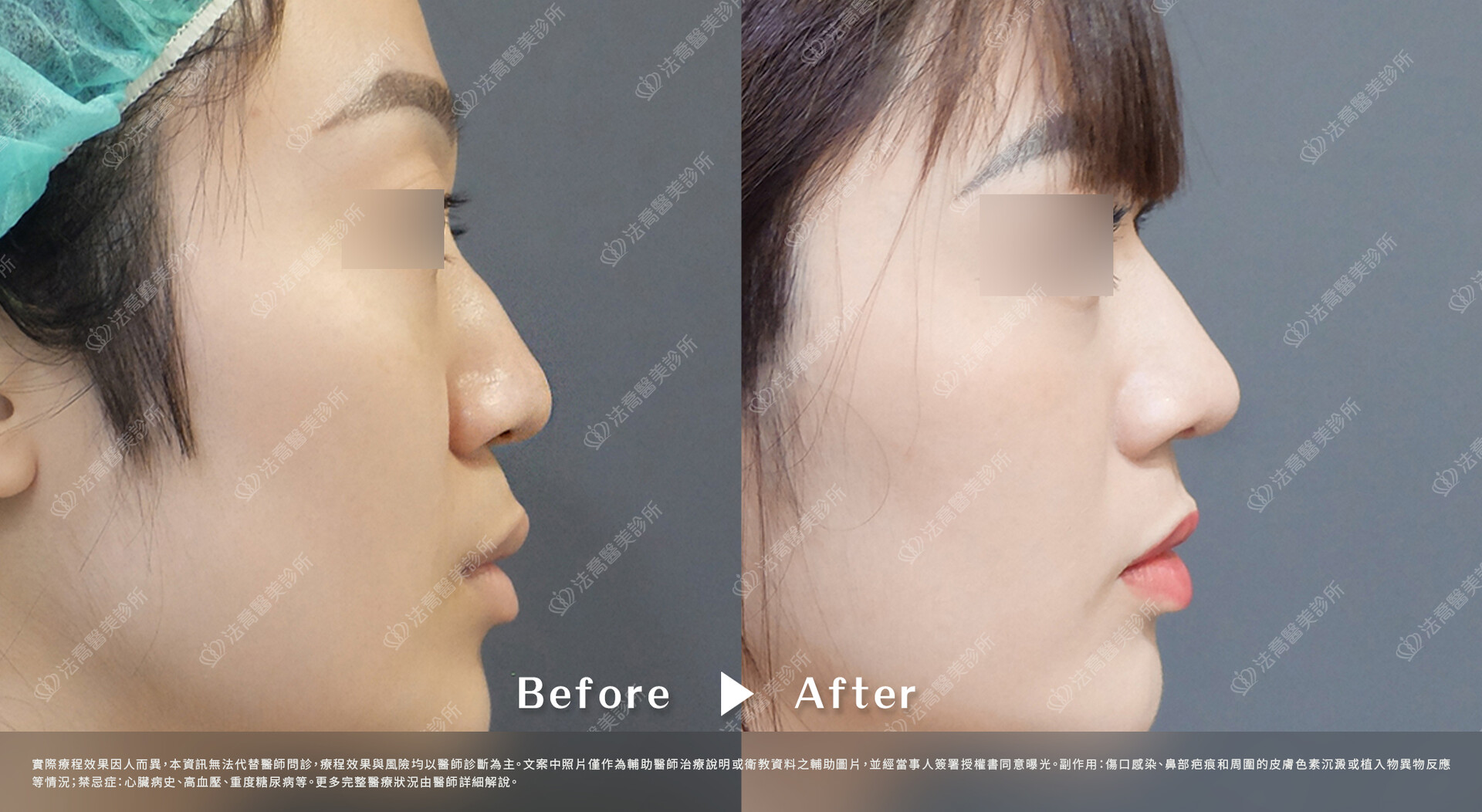 ▲半自體肋骨隆鼻 / 術前與術後1個月(文案中照片僅作為輔助醫師治療說明或衛教資料之輔助圖片,並經當事人簽署授權書同意曝光。)