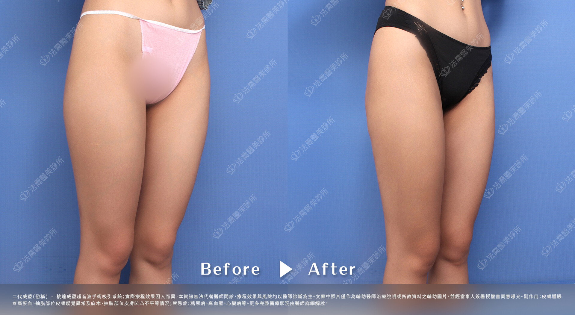 - 抽脂不等於減肥,目的在於改善身體曲線,再以飲食控制及適當的運動來減少體重,才會達到健康的體態。