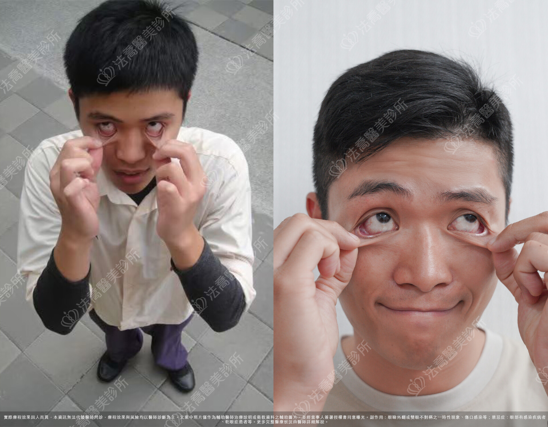 - 眼瞼整形手術者,術後可能因疤痕反應造成眼瞼外翻或雙眼不對稱之一時性現象,此多半會在術後半年左右,疤痕穩定後逐漸改善。