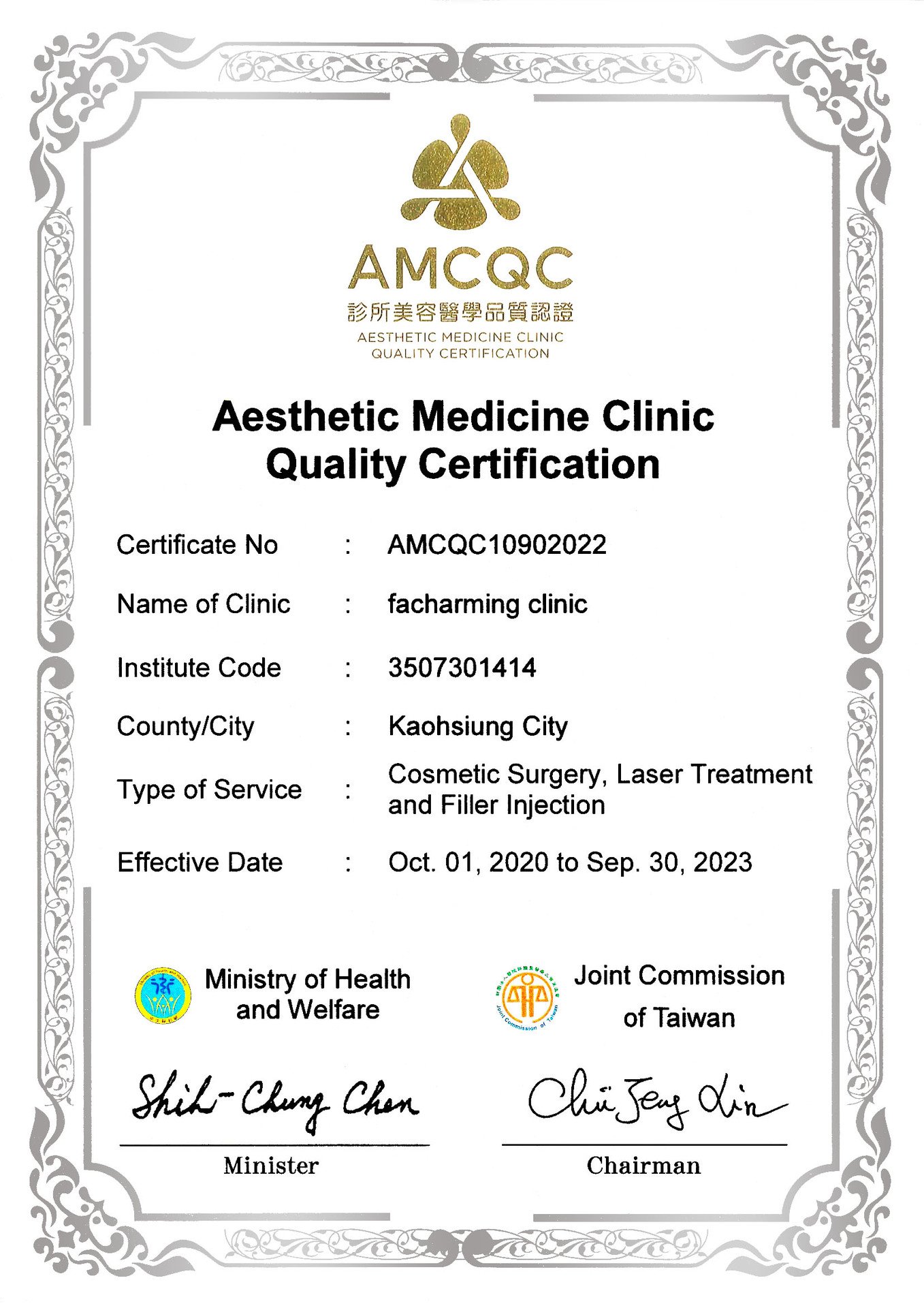 法喬醫美診所台北與高雄院所,皆榮獲醫策會美容醫學品質認證,總院長邱浚彥醫師表示,將持續提供「安全且誠信」的醫療環境給愛美的民眾,貫徹法喬「追求完美」、「打造個人魅力」的團隊經營理念。