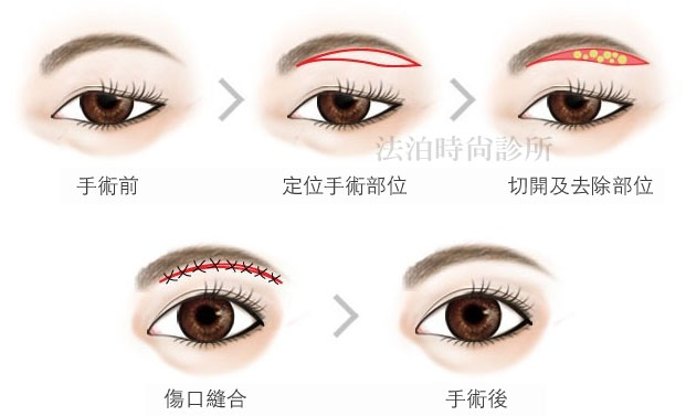 很多人都認為眼皮下垂了就只能靠割雙眼皮來改善,這個想法是錯的!主要還是要判斷下垂的部位在哪裡,才能做出適當的解決方式,如果是外側眼角下垂,從割雙眼皮的切口是無法改善的,要改善外側眼尾下垂,最好的方式是做切眉手術,即從眉毛下緣修掉多餘的皮膚,讓原本被覆蓋的雙眼皮再現,效果自然且恢復期比割雙眼皮還快,眉毛下方也易藏疤痕,待拆完線後三天即可畫眉毛,術後三個月也可以利用紋繡的方式遮蓋疤痕,是個費用親民又有效的手術。