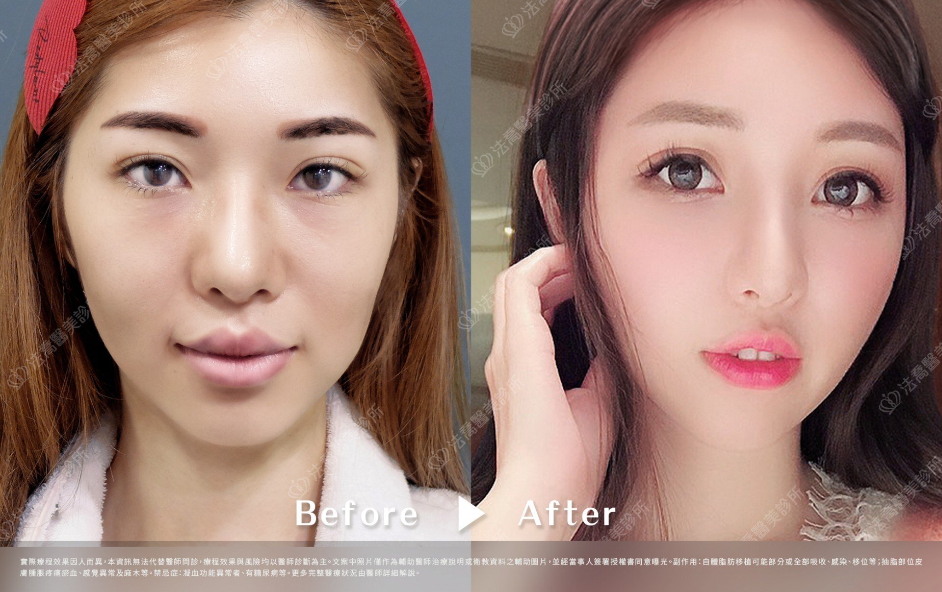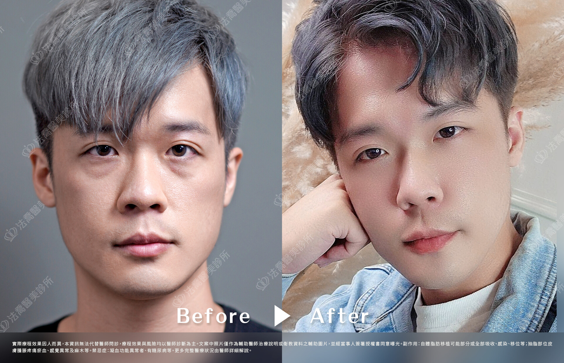 - 臉部有菱有角,老態龍鍾者出來,取其純化脂肪進行填補。由於注射的脂肪會有部分自體吸收的情形,所以大約術後三個月脂肪存留將趨於穩定。