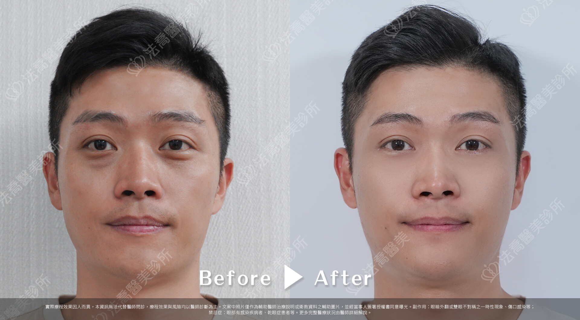 - 將原本的眼袋脂肪移位或移除,效果明顯。