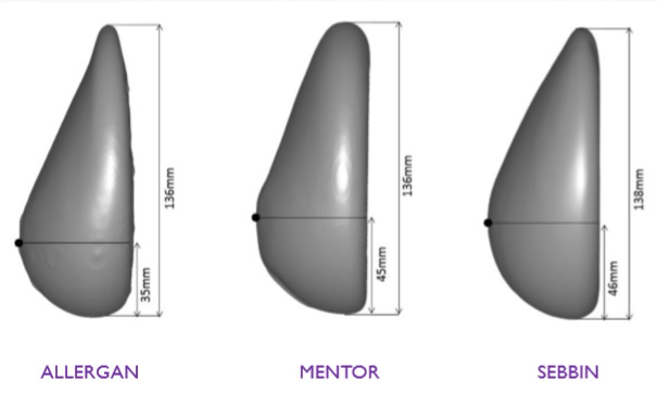 柔滴的乳房植體在硬度上、形狀、尺寸上有多種不同的選項,種類包含光滑的圓形植體、微紋理的圓形植體、解剖結構式的植體。