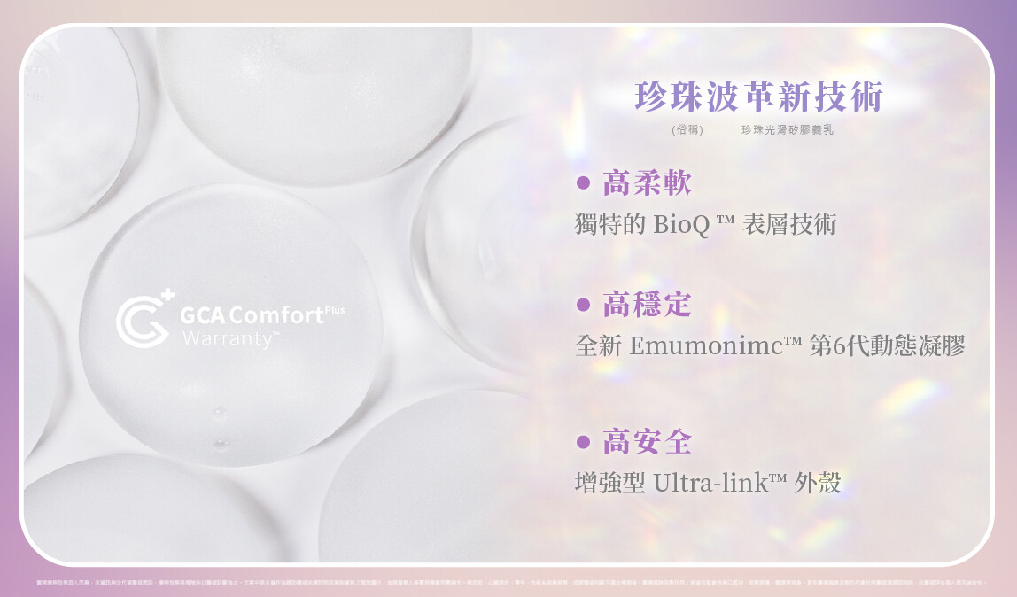 GCA® 在專業知識、長期臨床數據支持和市場領先地位,珍珠波 PERLE™/盈波IMPLEO™作為其中產品,可以提供多項品質保證,讓人能夠安心放心的選擇這個品牌的產品。